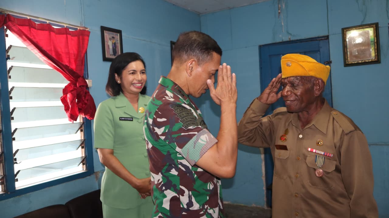 MANOKWARI – Momen penuh haru dan kehangatan mewarnai rangkaian peringatan HUT ke-80 TNI di wilayah Papua Barat. Pangdam XVIII/Kasuari, Mayjen TNI Christian Kurnianto Tehuteru, bersama Ketua Persit KCK Daerah XVIII/Kasuari, Ny. Mevi Christian K. Tehuteru, turun langsung mengunjungi dan menyerahkan tali asih kepada para Veteran dan Warakawuri di Manokwari, Senin (29/9/2025).
