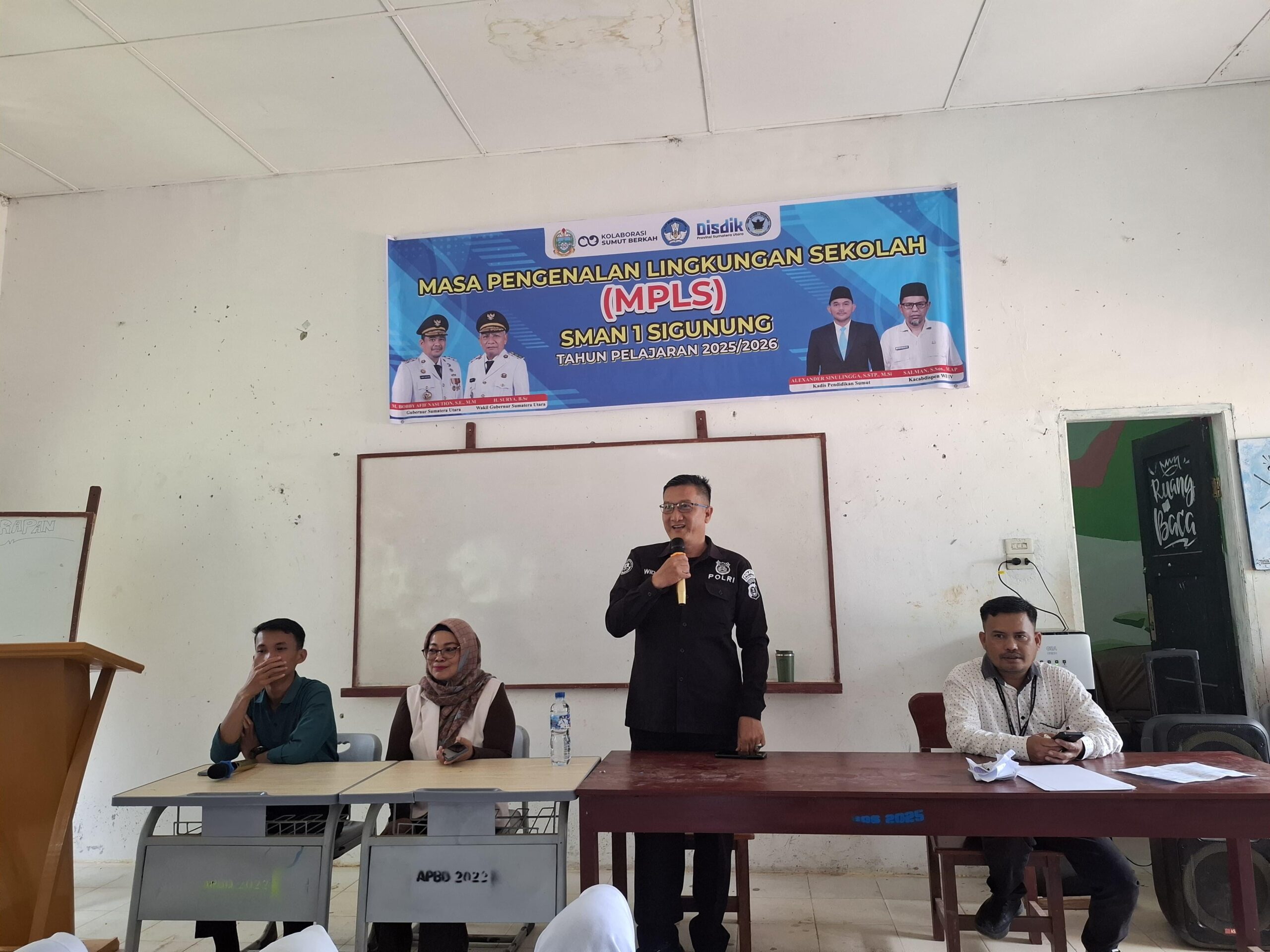 Kapolres Pakpak Bharat AKBP Pebriandi Haloho, S.H., S.I.K., M.Si melalui Ps. Kasi Humas Polres Pakpak Bharat Aiptu Widodo menjelaskan dirinya di minta langsung oleh Kepala Sekolah SMA Negeri 1 Sigunung Ibu Ari Susanty, S.S untuk menjadi Narasumber dalam rangka Masa Pengenalan Lingkungan Sekolah ( MPLS ) – Back To School bagi Pelajar yang baru masuk di kelas X sebagai bentuk edukasi kepada mereka.