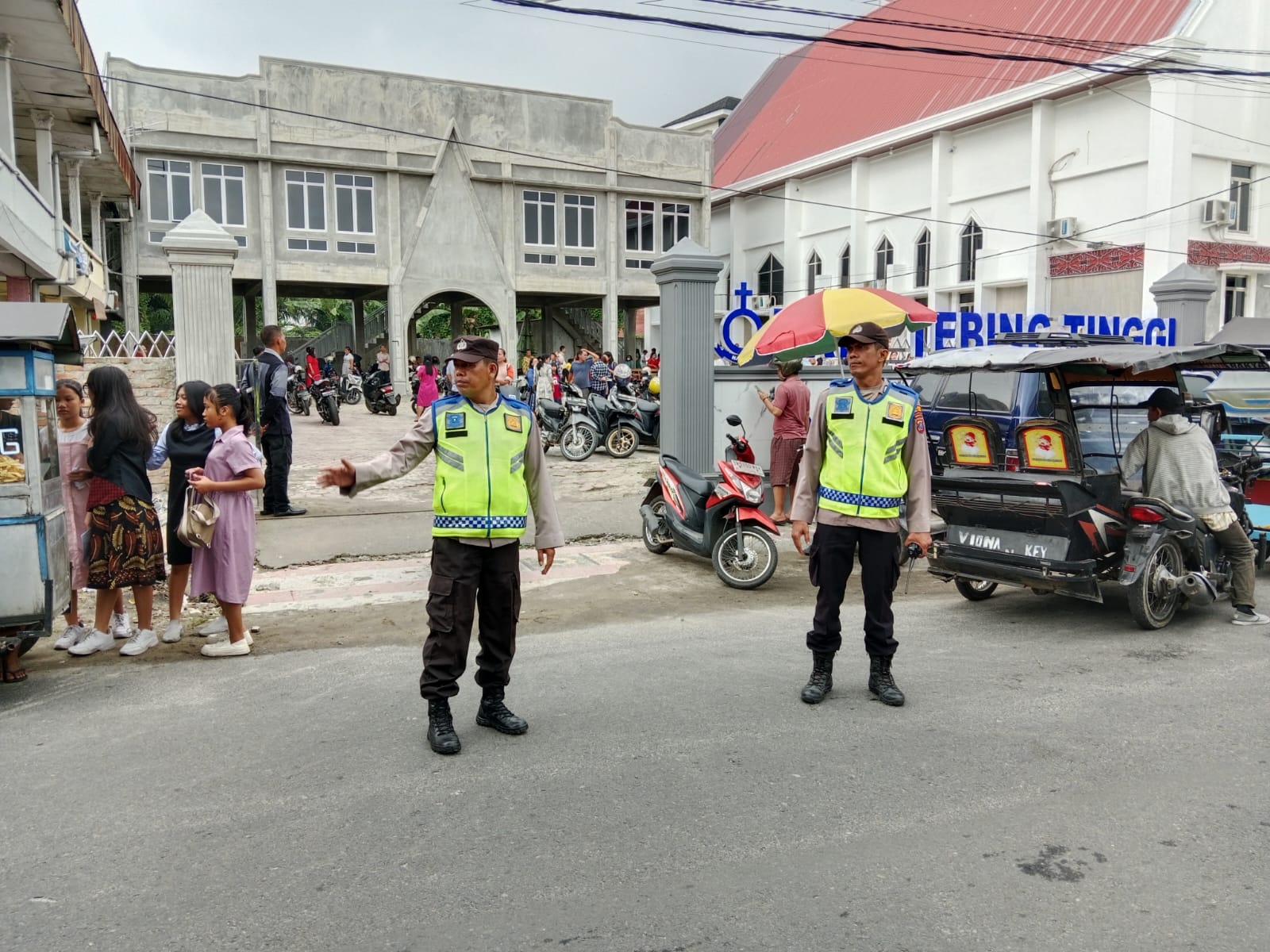 TEBING TINGGI – Dalam rangka memastikan keamanan dan kenyamanan umat Kristiani yang melaksanakan ibadah Minggu Kasih, Polsek Padang Hilir Polres Tebing Tinggi melakukan patroli dan memberikan pengamanan disejumlah Gereja yang berada di wilayah hukumnya, Minggu (7/9/2025).