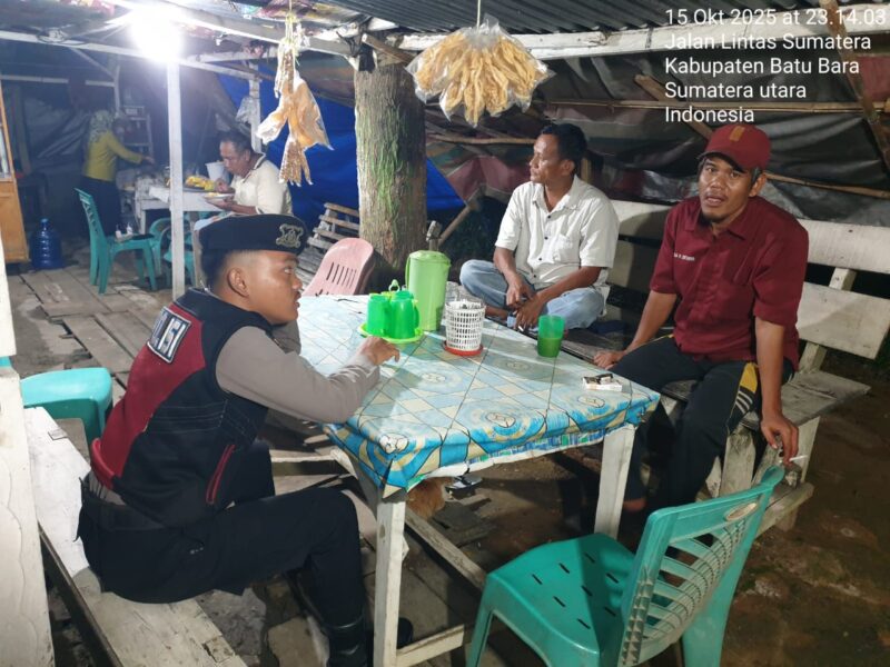BATU BARA – Personil Sat Samapta Polres Batu Bara melaksanakan Patroli, dan Cooling System dalam mencegah terjadinya aksi 3C dan tindak kejahatan lainnya di Wilayah Hukum Polres Batu Bara. Giat Patroli dilaksanakan dengan menyambangi masyarakat yang berada di Warung Ibu Uciato di Simpang Dolok, Kecktan Lima Puluh, Batu Bara, Sumatera Utara, Rabu (15/10) Pukul.23.30 Wib.