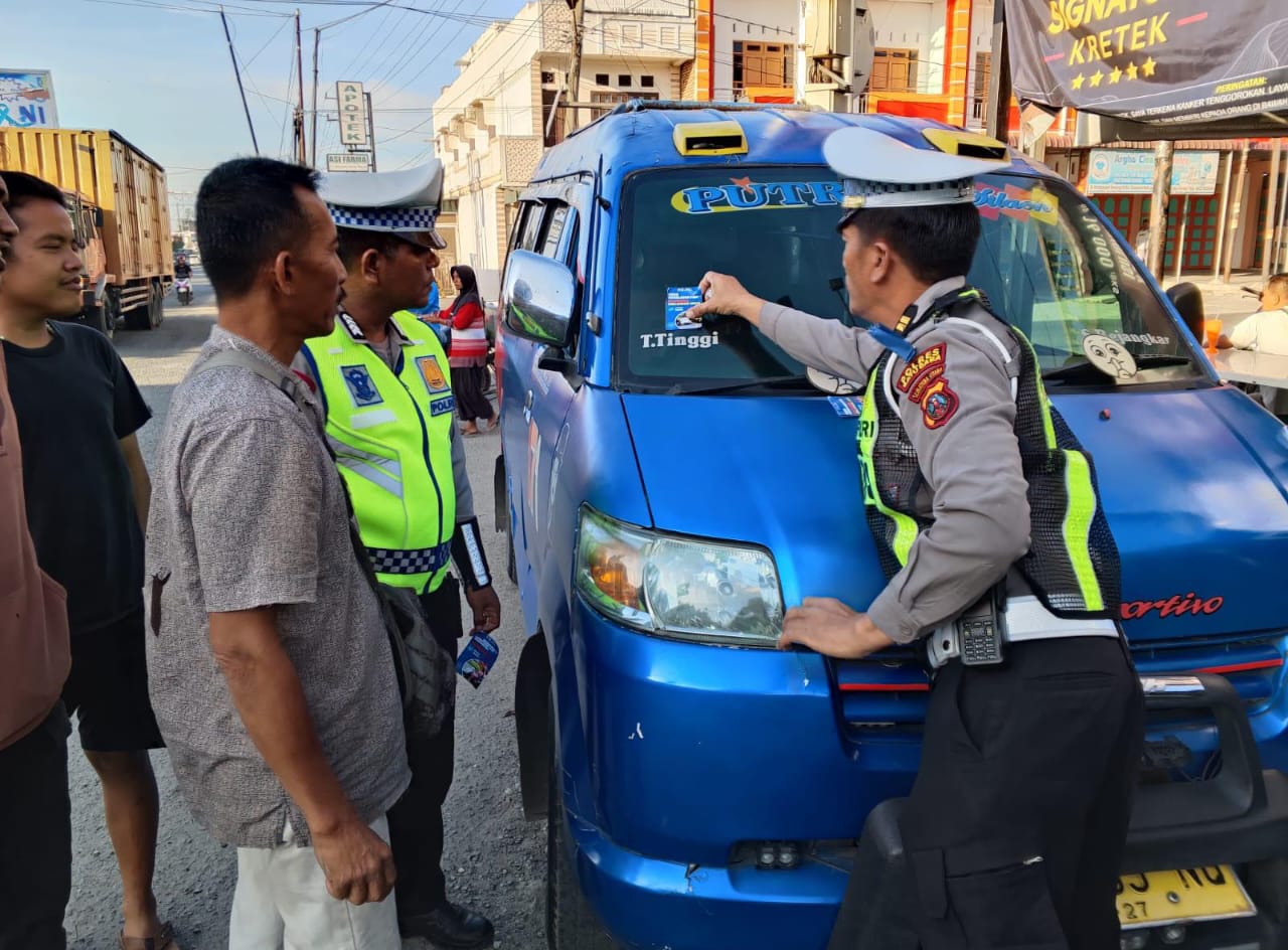 Giay yang dipimpin Kasat Lantas AKP Agnis Juwita, S.Ik, M.M, M.Si, bersama personilnya guna memberikan bimbingan dan penyuluhan (Binluh) kepada supir angkutan.