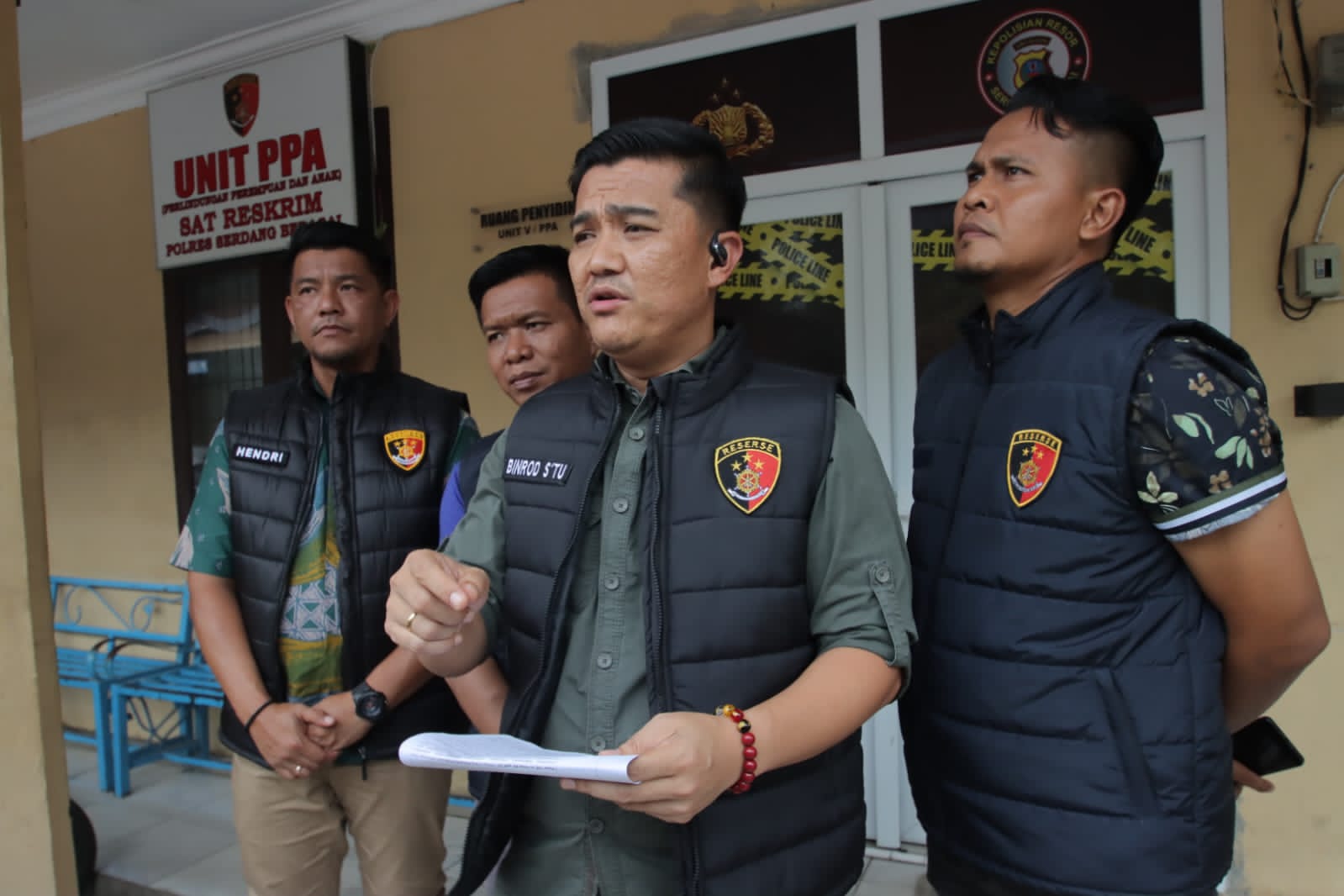 SERGAI – Kasat Reskrim Polres Serdang Bedagai (Sergai) Iptu Binrod Situngkir, S.H, M.H, beberkan pengungkapan 3 (Tiga) kasus tindak pidana Perlindungan Perempuan dan Anak (PPA). Giat dilaksanakan bersama KBO Sat Reskrim Iptu Zulfan Ahmadi, S.H, M.H, Kanit PPA Ipda Ardika Junaidi Napitupulu, S.H, dan Para Kanit lainnya di Kantor PPA Sat Reskrim Polres Sergai Jalan Negara Sei Rampah, Sergai, Sumatera Utara, Jumat (15/8) Pukul.14.40 Wib.