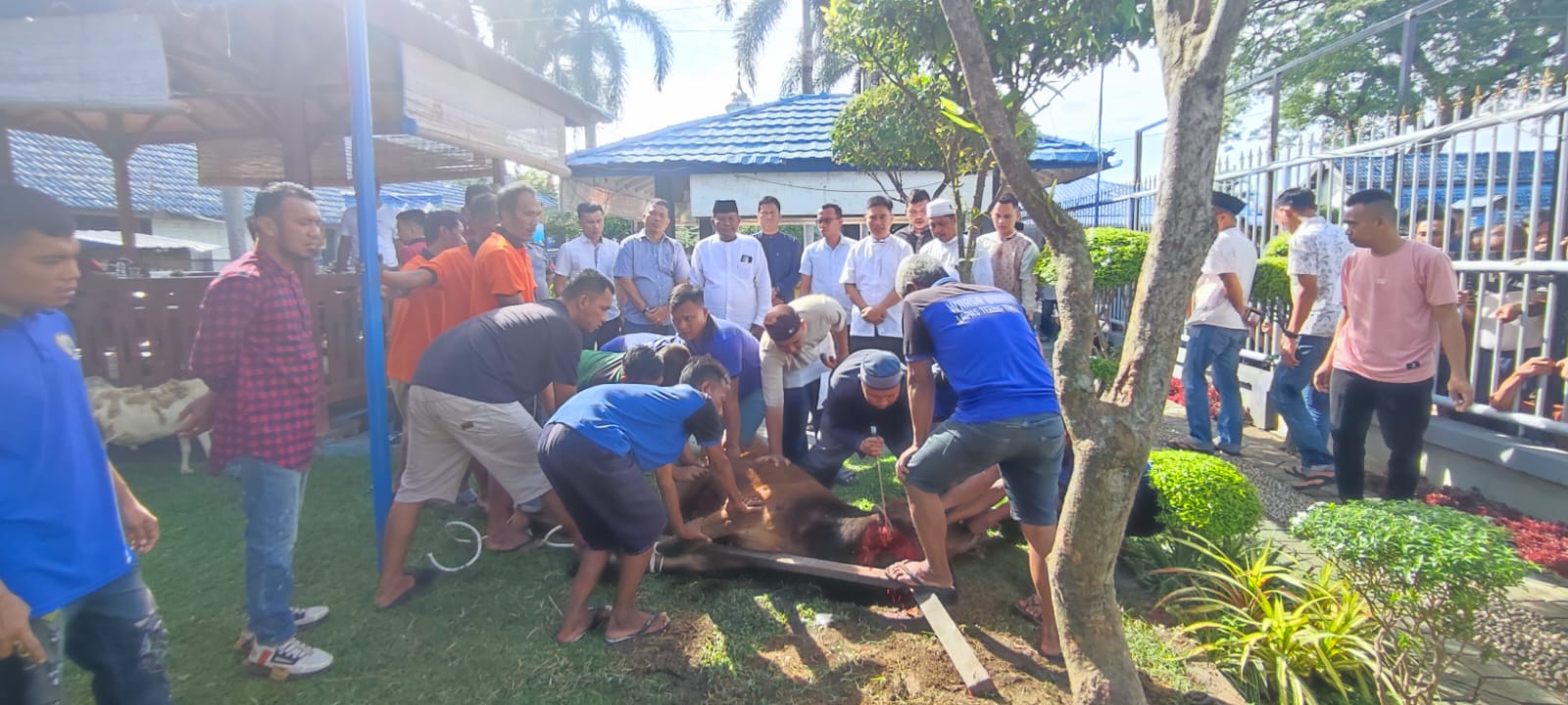 TEBINGTINGGI – Lembaga Pemasyarakatan (Lapas) Kelas IIB Tebing Tinggi Kanwil Ditjenpas Sumatera Utara melakukan pemotongan  hewan qurban pada hari raya Idul Adha 1446 H. Dimana daging hewan qurban tersebut nantinya dibagikan kepada warga binaan pemasyarakatan, masyarakat dan petugas. Jum’at (06/06).