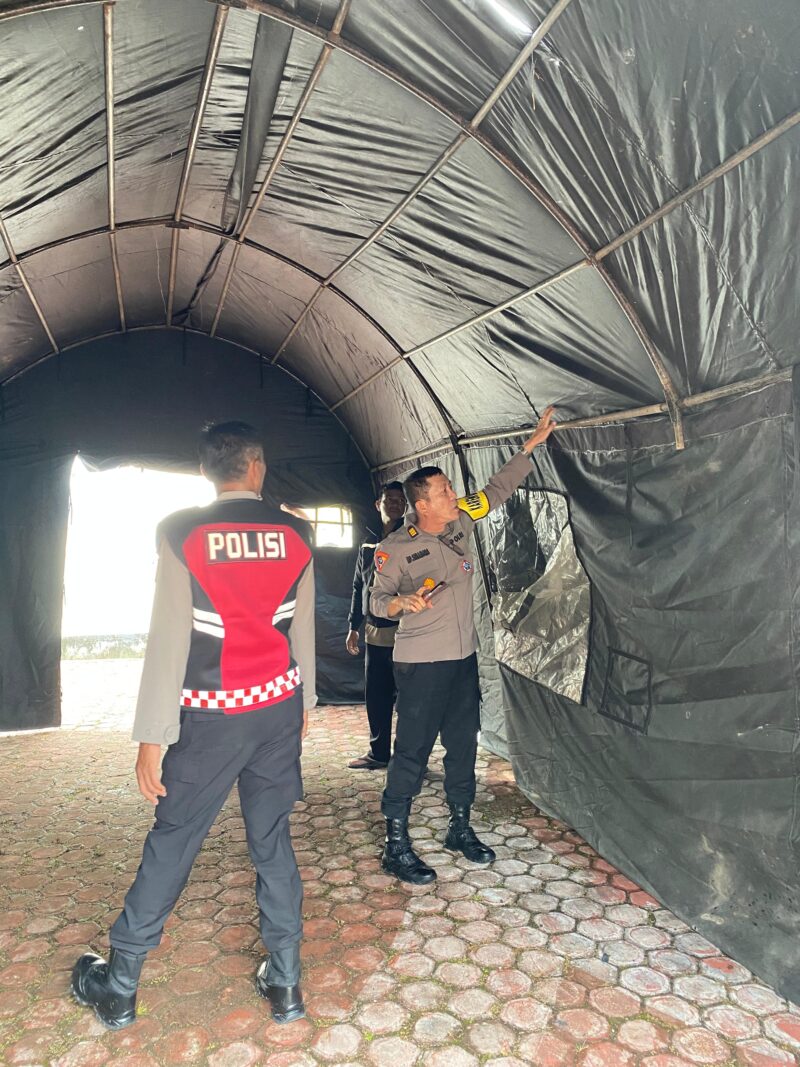 Selanjutnya Personil Sat Samapta mengeluarkan peralatan dari Gudang Bag Log berupa Tenda lapangan dan langsung memasangnya/mendirikannya di lapangan Apel Mapolres Pakpak Bharat.