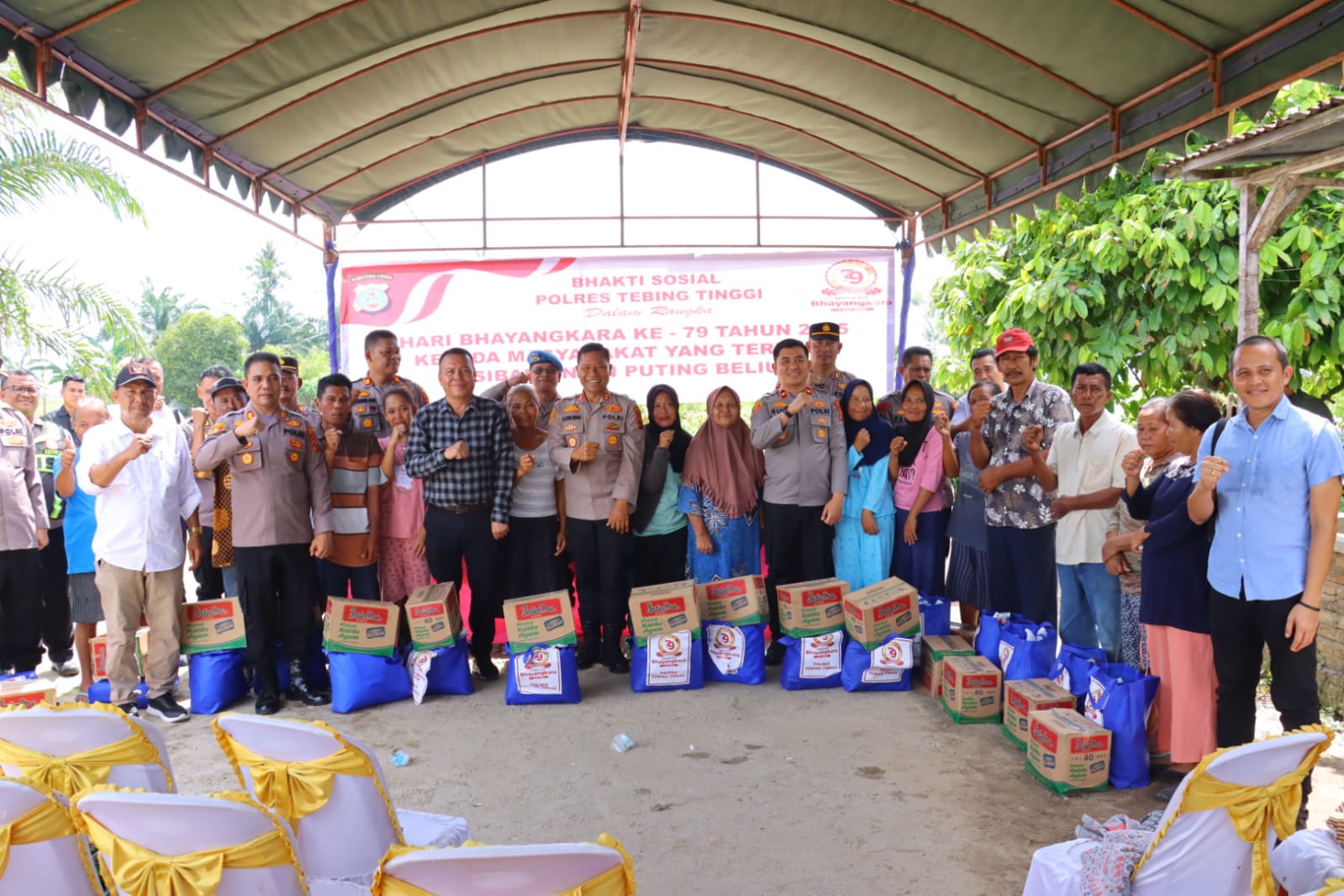 Baksos dipimpin langsung oleh Kapolres Tebing Tinggi AKBP Drs. Simon Paulus Sinulingga, S.H., didampingi Wakapolres Kompol Rudi Syahputra, S.Kom., serta turut dihadiri oleh jajaran Pejabat Utama Polres Tebing Tinggi. Turut hadir, Ketua DPRD Kabupaten Serdang Bedagai Togar Situmorang dan tokoh masyarakat setempat.