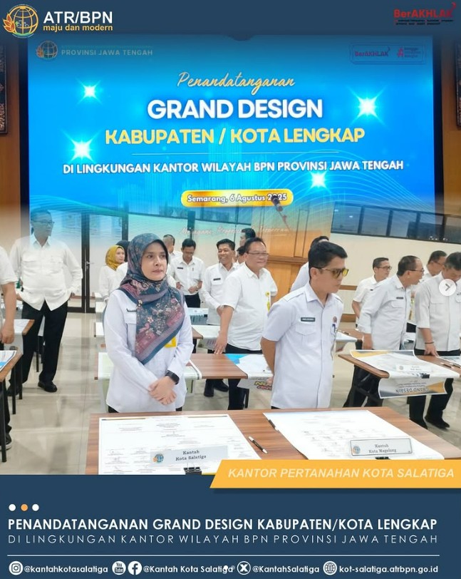 Dengan telah ditandatanganinya Grand Design ini, Kantor Pertanahan Kota Salatiga siap melangkah lebih maju untuk menjadi bagian dari wilayah lengkap yang berdaya saing, memberikan perlindungan hukum atas tanah masyarakat, serta mendukung tata kelola ruang yang berkelanjutan.