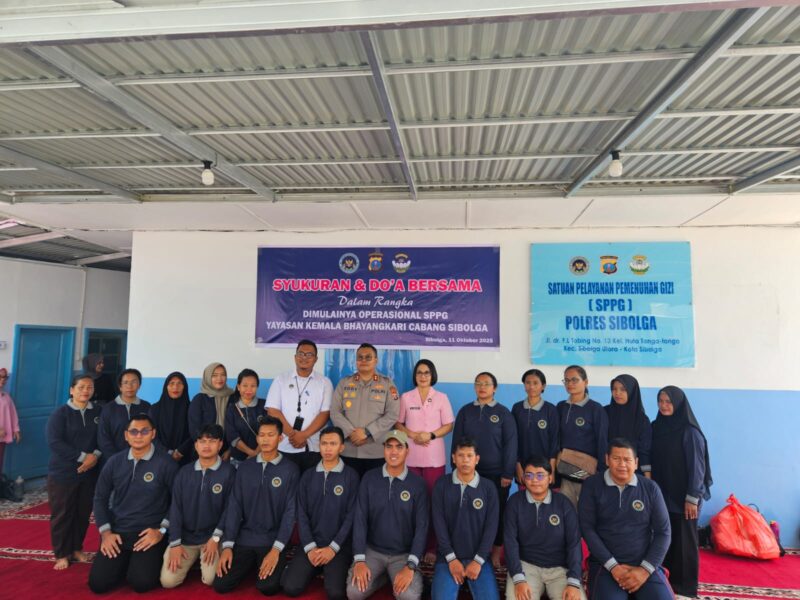 SIBOLGA – Dalam suasana penuh kebersamaan dan rasa syukur, telah dilaksanakan Doa Bersama dan Syukuran dalam rangka dimulainya operasional Sentra Pelayanan Publik Gratis (SPPG) Yayasan Kemala Bhayangkari Cabang Sibolga. Kegiatan ini berlangsung pada hari Sabtu, 11 Oktober 2025, pukul 10.30 WIB bertempat di Gedung SPPG Yayasan Kemala Bhayangkari Cabang Sibolga, Jl. DR. F.L Tobing No. 13, Kelurahan Huta Tonga-tonga, Kecamatan Sibolga Utara, Kota Sibolga.