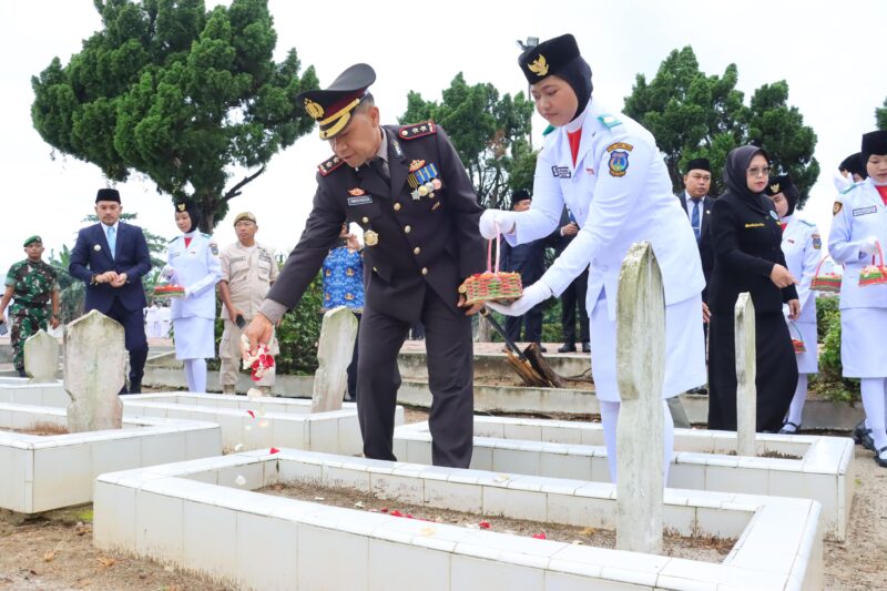 TEBING TINGGI – Dalam rangka memperingati Hari Pahlawan tahun 2025, Kapolres Tebing Tinggi AKBP Drs. Simon Paulus Sinulingga, S.H. bersama Walikota Tebing Tinggi H. Iman Irdian Saragih, S.E., serta unsur Forkopimda Kota Tebing Tinggi melaksanakan Upacara Ziarah dan Tabur Bunga di Taman Makam Pahlawan, Jalan Taman Bahagia Kelurahan Tanjung Marulak, Kecamatan Rambutan, Kota Tebing Tinggi pada Senin pagi (10/11/2025).