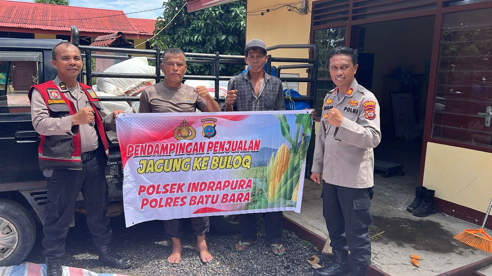 BATU BARA – Kapolsek Polsek Indrapura Polres Batu Bara AKP Reynold Silalahi, S.H, bersama Ipda Gomgom Sinaga, dan Aipda Kelana, melaksanakan pendampingan penjualan Jagung Kelompok Tani (Koptan) Sahata ke Bulog Asahan, Batu Bara, Sumatera Utara, Sabtu (4/10) Pukul.10.30 Wib.