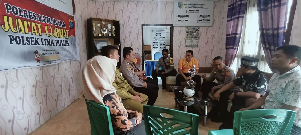 Kapolsek Lima Puluh AKP S. Sagala, S.H Jumat Curhat di Balai Desa Sumber Makmur