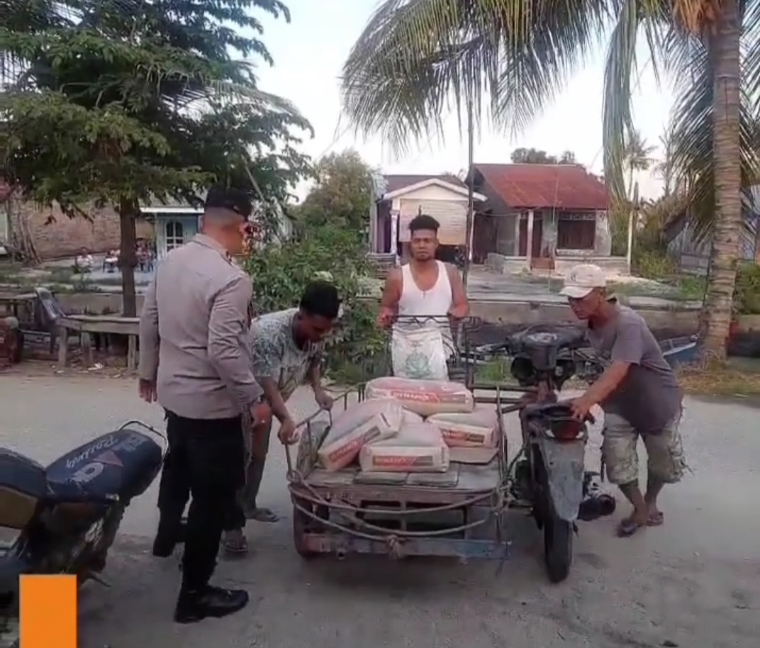 Pemberian bantuan bahan material berupa semen, dan batu bata yang dilaksanakan bersama Personil Polsek Medang Deras, diberikan langsung kepada keluarga Bapak Togar Sianipar.