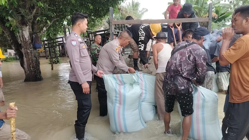 BAGU BARA – Kapolsek Medang Deras Resor Batu Bara AKP Alfander H. Sagala, berdama Personil Polsek Medang Deras, dan Personil Koramil 01/MD, melaksanakan memantau dan mengecek lokasi banjir di Jalan Protokol Dusun Pinggir Sungai Desa Nenassiam, Kecamatan Medang Deras, Batu Bara, Sumatera Utara, Jumat (28/11/2025).