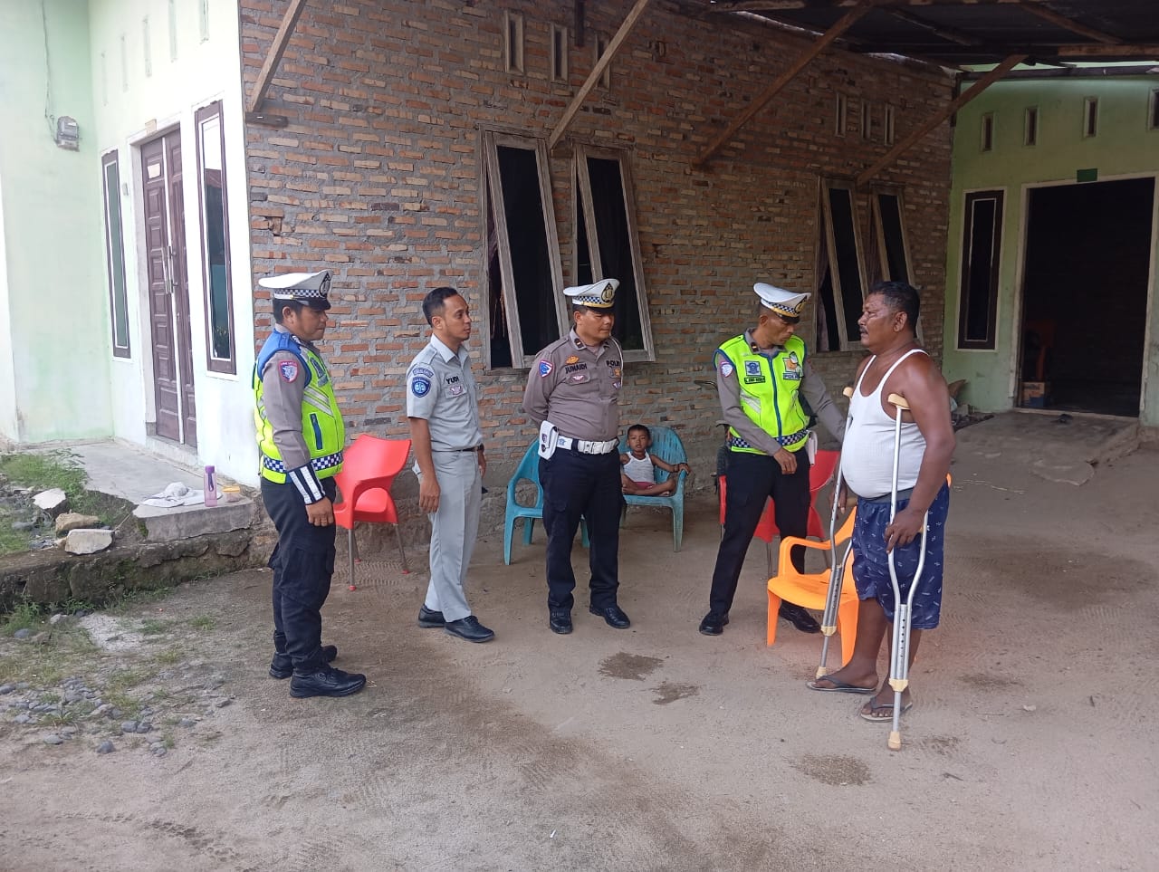 BATU BARA – Kasat Lantas Polres Batu Bara AKP Simon E. Simatupang, S.H, M.H, bersama Personilnya memberikan gali asih kepada korban Kecelakaan Lalulintas (Lakalantas) ang dialami warga Desa Mekar Baru, Kecamatan Sri Balai, Batu Bara, Sumatera Utara, Jumat (19/9) Pukul.17.00 Wib.