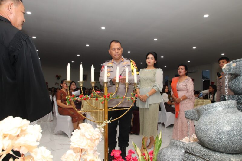 Perayaan Natal yang penuh sukacita dengan menyongsong tema Allah Hadir Untuk Menyelamatkan Keluarga (Matius 1:21-24), sub tema Sukacita Kelahiran Yesus Kristus Memotivasi POLRI Dalam Melayani Masyarakat Untuk Indonesia Maju,