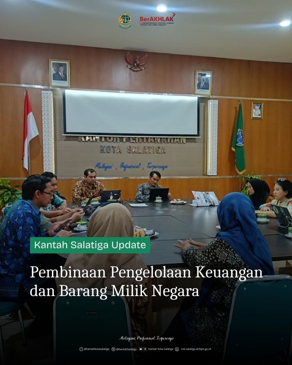 Melalui kegiatan ini, Kantor Pertanahan Kota Salatiga semakin mempertegas komitmennya untuk mengedepankan prinsip good governance, khususnya dalam aspek pengelolaan keuangan dan BMN. Diharapkan, hasil pembinaan dapat menjadi pedoman sekaligus motivasi bagi seluruh jajaran dalam mewujudkan pengelolaan keuangan negara yang profesional, transparan, serta berdaya guna tinggi bagi pelayanan publik.