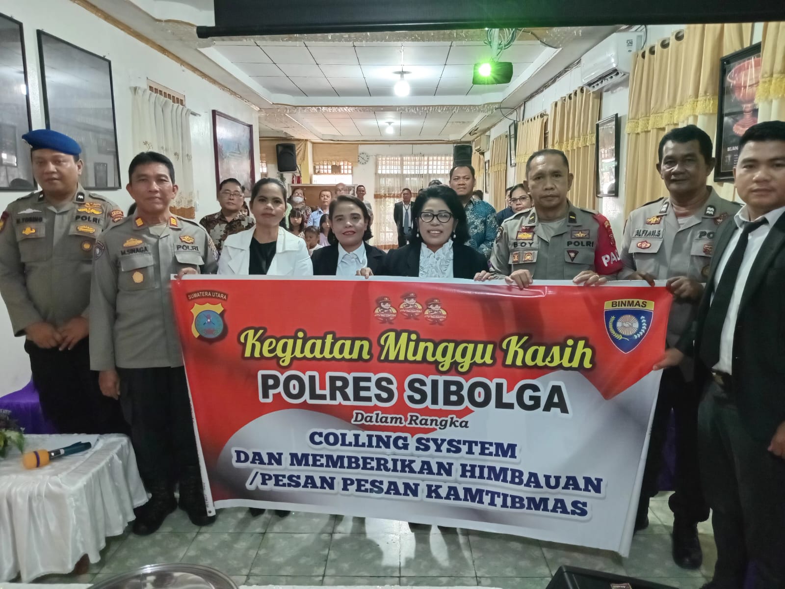 Dalam kesempatan tersebut, Kapolres Sibolga, menyampaikan himbauan dan pesan-pesan Kamtibmas kepada para Jemaat yang hadir. Salah satu himbauan yang disampaikan adalah Lapor Aksi Presmanisme dan Sosialisasi Call Center 110 Polres Sibolga, kemudian agar kita tetap mengawasi anak-anak agar tidak melakukan Tawuran dan kejahatan lainnya, dan tentang pencegahan kebakaran akibat instalasi listrik yang kurang aman. Masyarakat diingatkan untuk selalu waspada dan melakukan langkah-langkah pencegahan, seperti mematikan aliran listrik saat meninggalkan rumah serta memiliki peralatan proteksi kebakaran yang memadai.