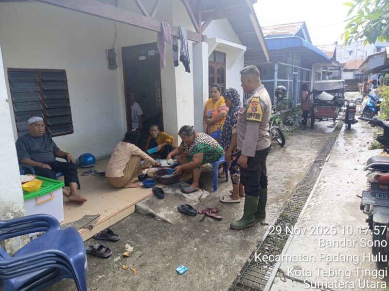 TEBING TINGGI, – Polsek Padang Hulu Polres Tebing Tinggi memastikan keamanan wilayahnya setelah banjir yang sempat melanda beberapa kelurahan, termasuk Kelurahan Mandailing dan Kelurahan Bandarsono. Melalui Bhabinkamtibmas Aiptu Adi Kuswono turun langsung melakukan patroli dan monitor di dua kelurahan tersebut, Sabtu (29/11/2025).
