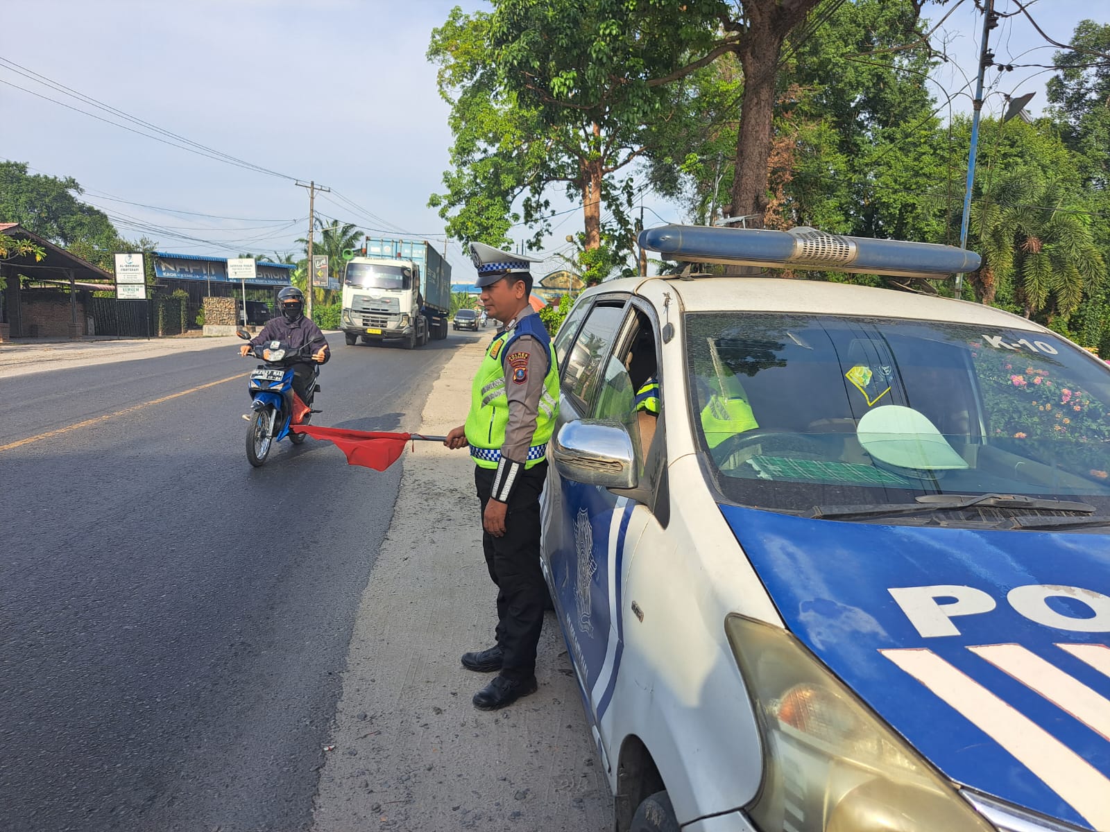 Pastikan Kamseltibcarlantas, Sat Lantas Polres Batu Bara Patroli Kibas Bendera