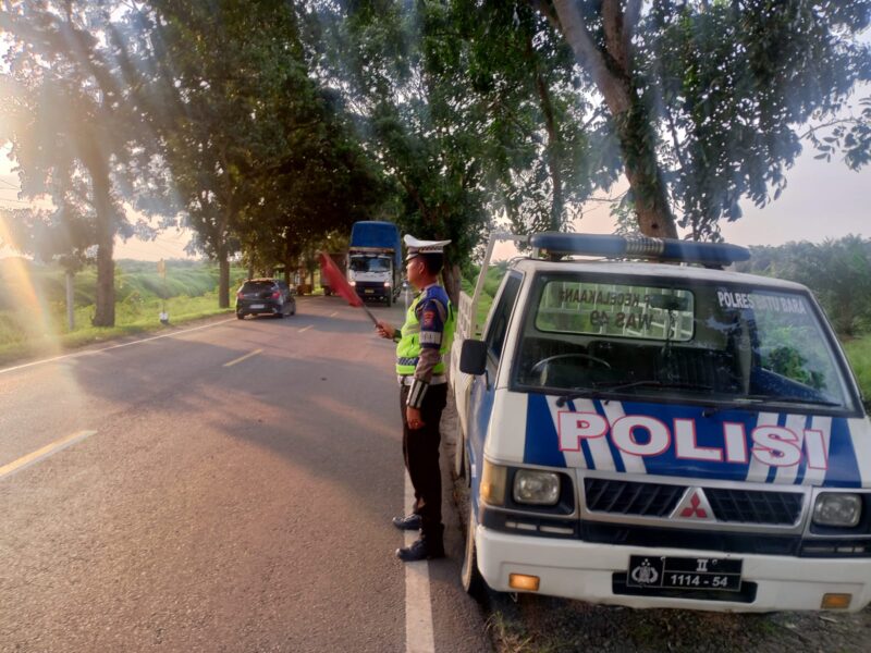 BATU BARA – Dalam memberikan pelayanan terbaik bagi pengguna jalan, Personil Sat Lantas Polres Batu Bara melaksanaan Patroli Kibas Bendera di beberapa titik rawan kemacetan di Jalinsum Indrapura – Perkebunan Tanah Datar, Batu Bara, Sumatera Utara, Rabu (29/10) Pukul.16.30 Wib.