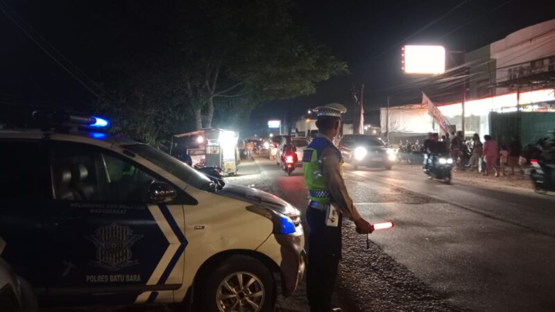 BATU BARA – Personil Satuan Lalu Lintas Polres Batu Bara melaksanakan Patroli Blue Light guna upaya pencegahan terjadinya Kemacetan, Kecelakaan lalu lintas, dan balap liar serta Kejahatan Jalanan, dengan menyusuri lokasi disekitaran Jalinsum, Rabu (5/11) Pukul.21.00 Wib.