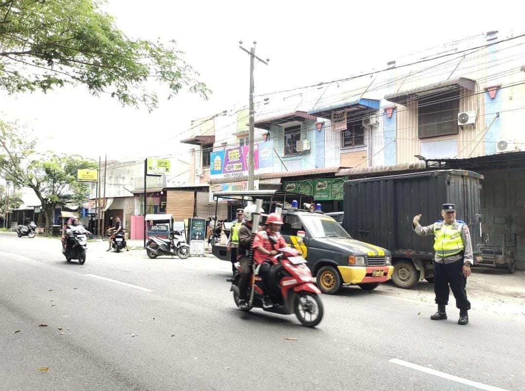 TEBING TINGGI – Dua personel Polsek Rambutan Resor Tebing Tinggi yakni Aiptu Derman Giawa dan Aipda Ryan Lestian melaksanakan kegiatan patroli dialogis. Kegiatan ini dengan menyusuri rute strategis di Jalan Gunung Lauser, Jalan Ir. H. Juanda, Jalan Sudirman hingga Jalan Yos Sudarso, pada Sabtu siang (12/7/2025).