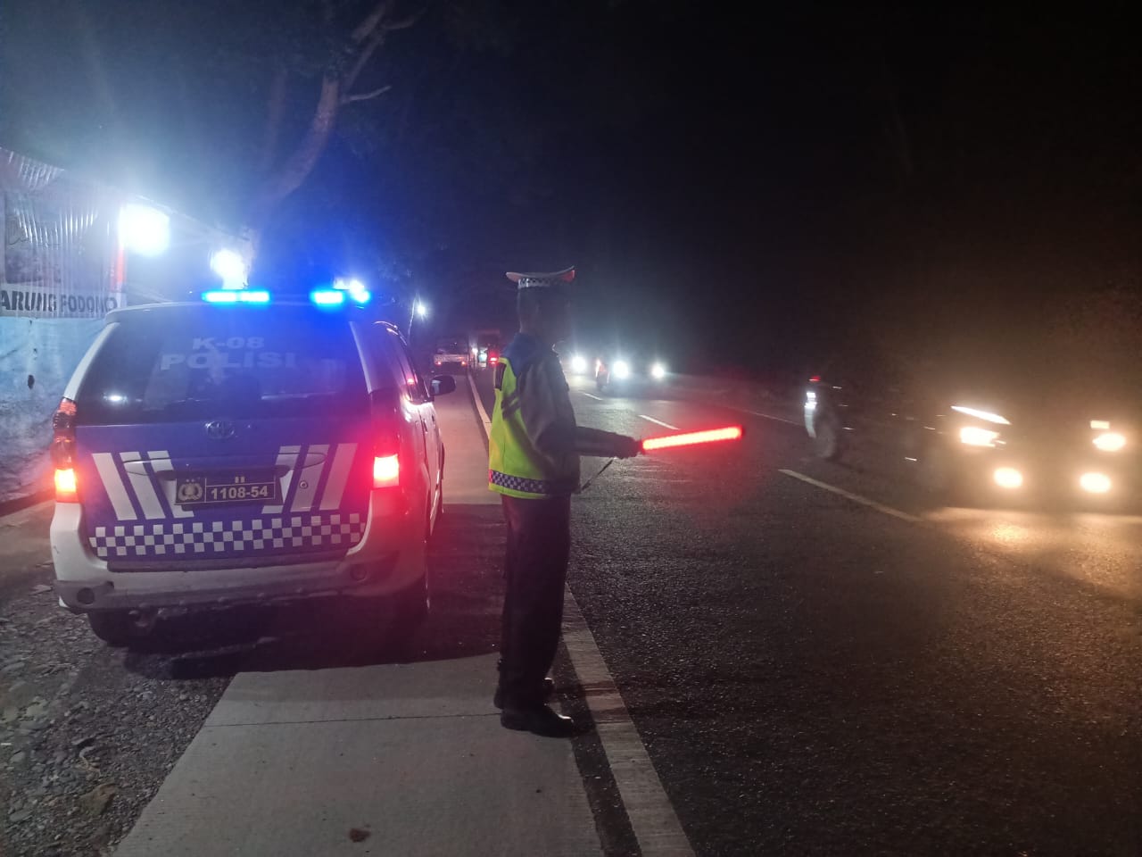 BATU BARA – Personil Satuan Lalu Lintas Polres Batu Bara melaksanakan Patroli Blue Light guna upaya pencegahan terjadinya Kemacetan, Kecelakaan lalu lintas, dan balap liar serta Kejahatan Jalanan, dengan menyusuri lokasi disekitaran Jalinsum, Minggu (19/10) Pukul.21.00 Wib.