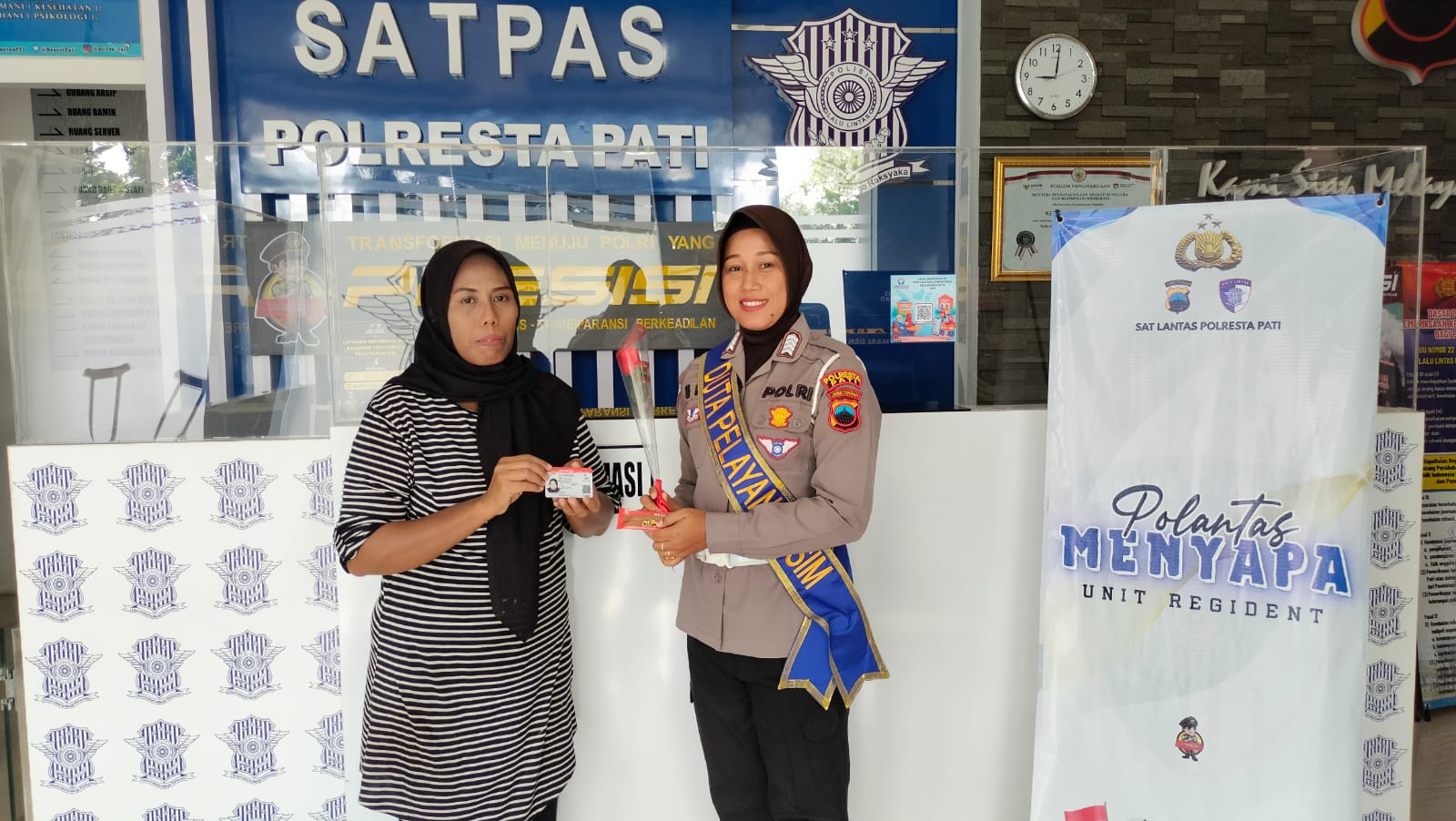 Sat Lantas Polresta Pati menggelar pelayanan SIM dengan Senyum, Sapa cara melayani pelayanan anggota Polresta Pati kepada semua masyarakat yang hendak melakukan dan mengajukan dalam pembuatan SIM (Surat Izin Mengemudi).