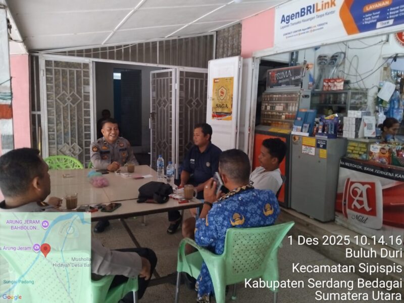 TEBING TINGGI – Polres Tebing Tinggi melalui Wakapolsek Dolok Merawan, Ipda M.T.P. Marpaung melaksanakan kegiatan sambang serta memberikan himbauan kepada Kepala Dusun VI Desa Dolok Merawan, Kecamatan Dolok Merawan, Kabupaten Serdang Bedagai pada Senin (1/12/2025).