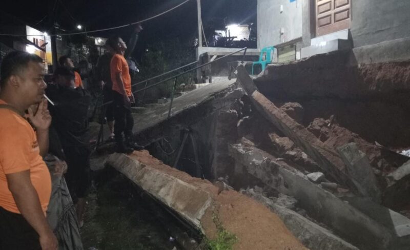 SIBOLGA – Pada Kamis malam, 16 Oktober 2025, sekitar pukul 21.00 WIB, terjadi tanah runtuh pada pondasi depan rumah penahan aliran parit sepanjang 20 meter dengan ketinggian 3 meter milik Mhd. Yusuf Zalukhu di Jalan Murai, Kelurahan Aek Manis, Kecamatan Sibolga Selatan, Kota Sibolga.