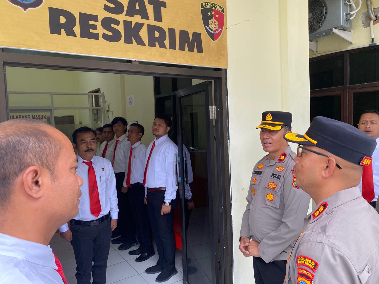 Kapolres Pakpak Bharat AKBP Pebriandi Haloho, S.H., S.I.K.,M.Si di dampingi Wakapolres Kompol Nelson Jefri Parulian Sipahutar, S.H., M.Si dan para PJU mendatangi Personil Bag, Sat dan Si, personil yang senior tetap laporan kekuatan anggotanya.