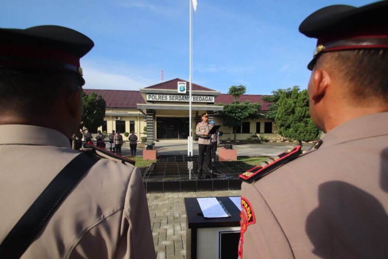 SERGAI – Kapolres Serdang Bedagai (Sergai) AKBP Jhon Sitepu, S.Ik, M.H, pimpin gelaran upacara Serah Terima Jabatan (Sertijab) dari Pejabat lama ke Pejabat yang baru, bertempat di Lapangan Mako Polres Sergai Jalan Negara, Sei Rampah, Sergai, Sumatera Utara, Senin (13/10) Pukul.07.30 Wib.