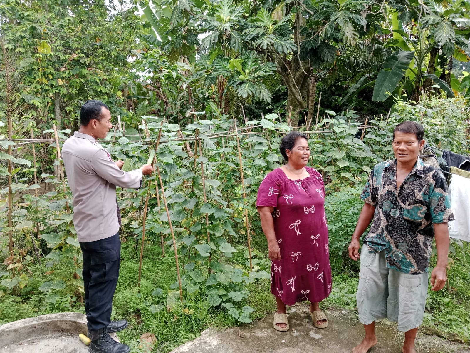 BATU BARA – Personil Sat Binmas Polres Batu Bara melakukan pengecekan lokasi program ketahanan pangan pemanfaatan pekarangan bergizi diwilayah Desa Perkebunan Dolok Lonsum Lima puluh, Kecamatan Lima Puluh, Batu Bara, Sumatera Utara, Kamis (10/9) Pukul.10.00 Wib.