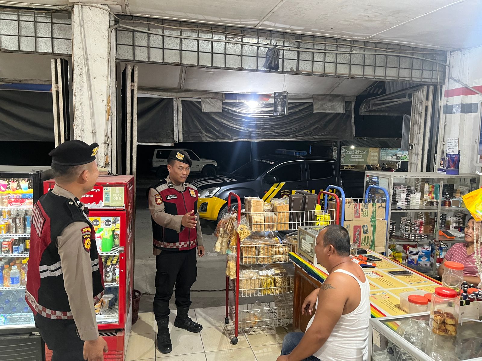 BATUBARA – Personil Sat Samapta Polres Batu Bara, melaksanakan giat Patroli dan Cooling System guna menciptakan Rasa aman, dan menyampaikan himbauan pesan Kamtibmas kepada warga di Warung Pak Agus Desa Mangke Lama, Batu Bara, Sumatera Utara, Senin (28/7) Pukul.23.30 Wib.