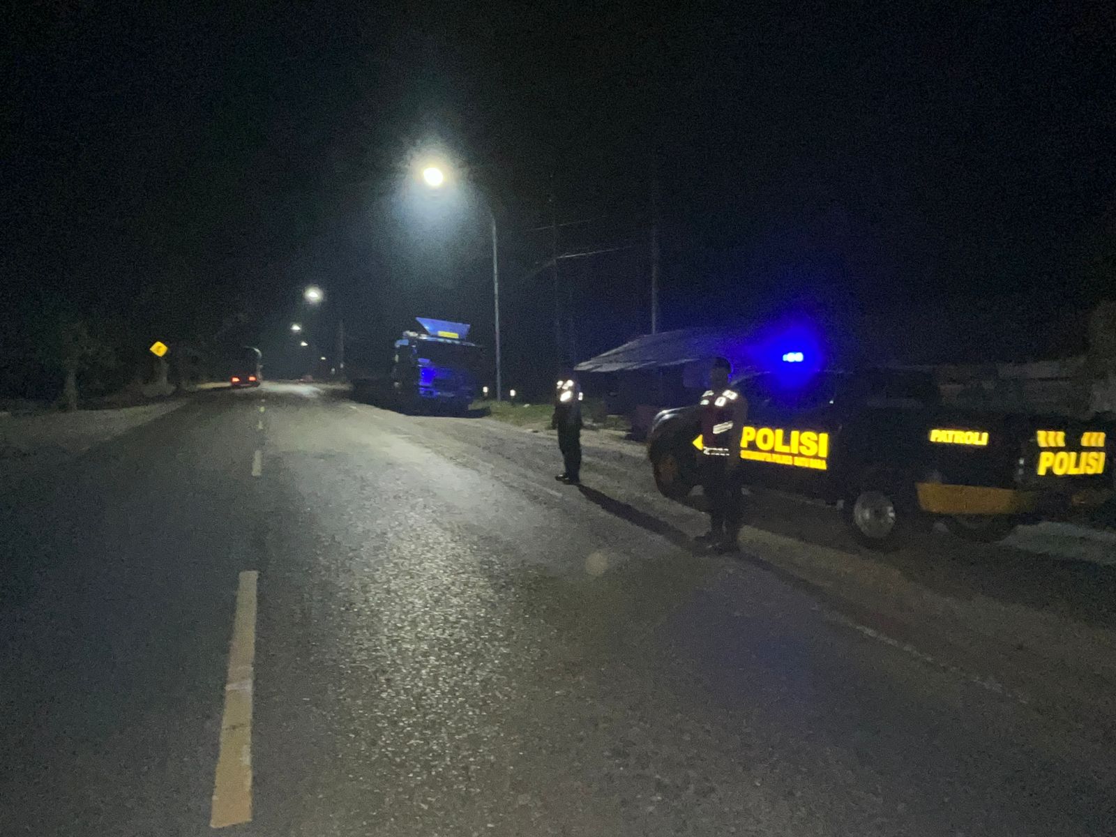 BATU BARA – Personil Sat Samapta Polres Batu Bara melaksanakan Patroli Presisi blue light dalam mengantisipasi aksi kejahatan disekitaran Simpang Kresek, Batu Bara, Sumatera Utara, Minggu (13/7) Pukul.01.30 Wib.