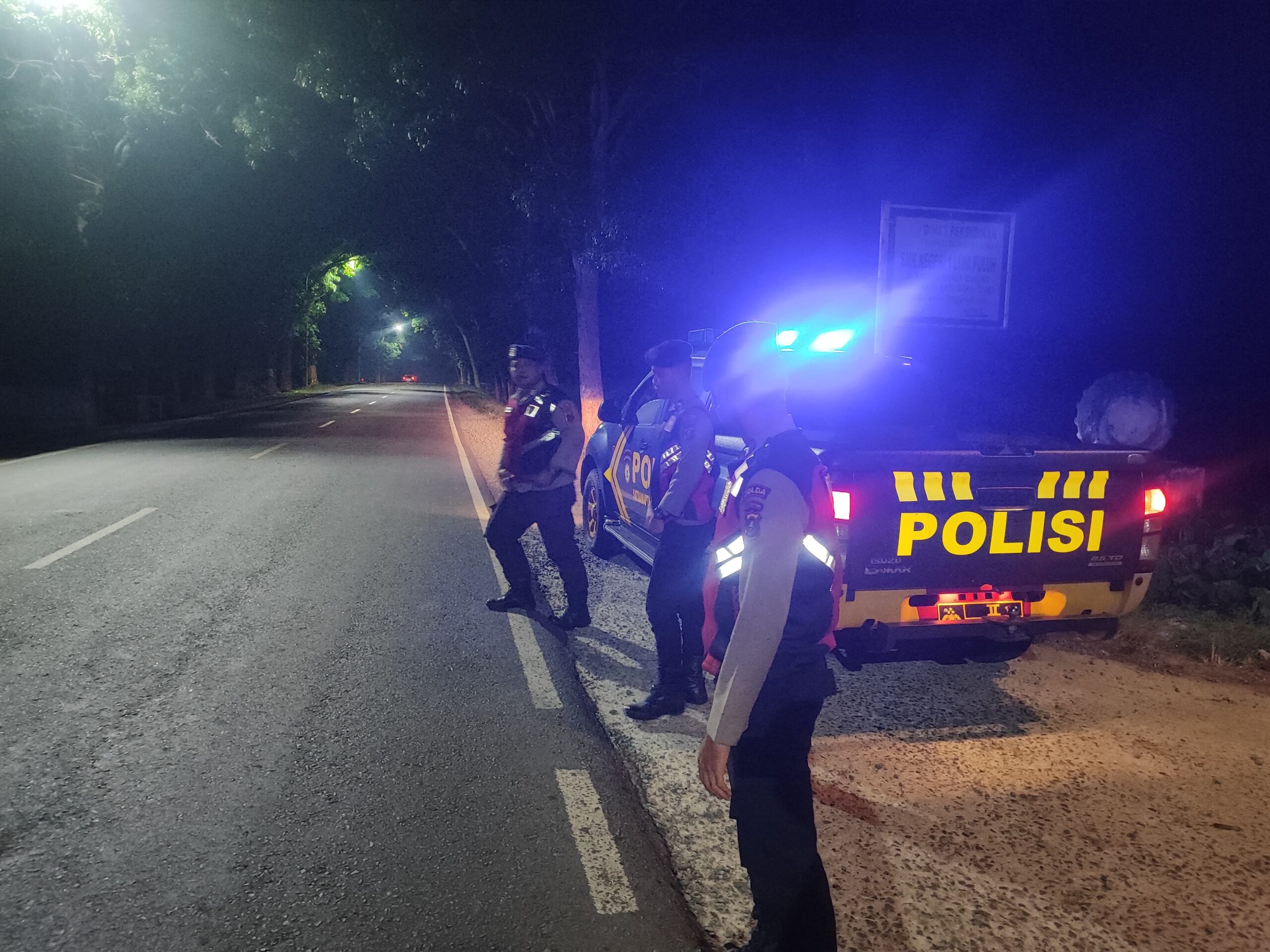 BATU BARA – Personil Sat Samapta Polres Batu Bara melaksanakan Patroli Presisi blue light dalam mengantisipasi aksi kejahatan disekitaran Simpang Kresek, Batu Bara, Sumatera Utara, Senin (14/7) Pukul.01.00 Wib.