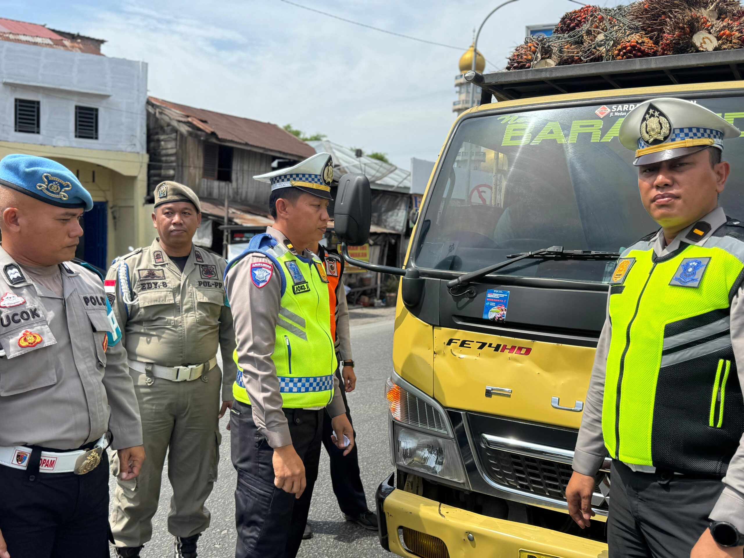 BATU BARA – Kasatlantas Polres Batu Bara AKP Agnis Juwita, S.Ik, M.M, M.Si, bersama personil Dishub, pihak PT. Jasaraharja, UPT Samsat, dan Personil Sat Lantas, memberikan himbauan tertib berlalu lintas, dan pemasangan stiker dalam rangka Operasi Patuh Toba 2025, di Simpang Empat Lima Puluh, Batu Bara, Sumatera Utara, Kamis (17/7) Pukul.10.00 Wib.