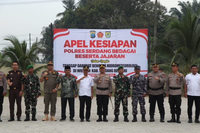 SERGAI, – Polres Serdang Bedagai (Sergai) menggelar Apel Kesiapan dalam rangka Tanggap Darurat Bencana Hidrometeorologi. Apel ini dipimpin langsung Kapolres AKBP Jhon Sitepu, S.Ik, M.H, di Lapangan Apel Mako Polres Sergai Jalan Negara Sei Rampah, Sergai, Sumatera Utara, Rabu (5/11) Pukul.09.00 Wib.