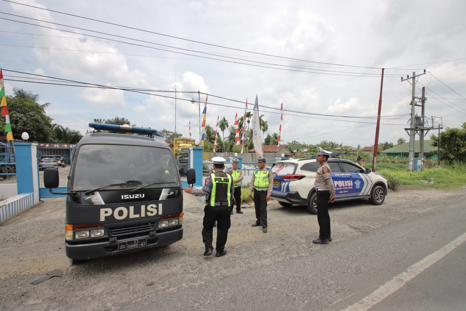 SERGAI – Dalam rangka mencegah terjadinya ancaman situasi Kamtibmas akan adanya unjuk rasa, Personil Polres Serdang Bedagai (Sergai) melaksanakan pengaturan, penjagaan, dan patroli, khususnya wilayah perbatasan di Kecanatan Sei Bamban – Tebing Tinggi, Sumatera Utara, Senin (1/9).