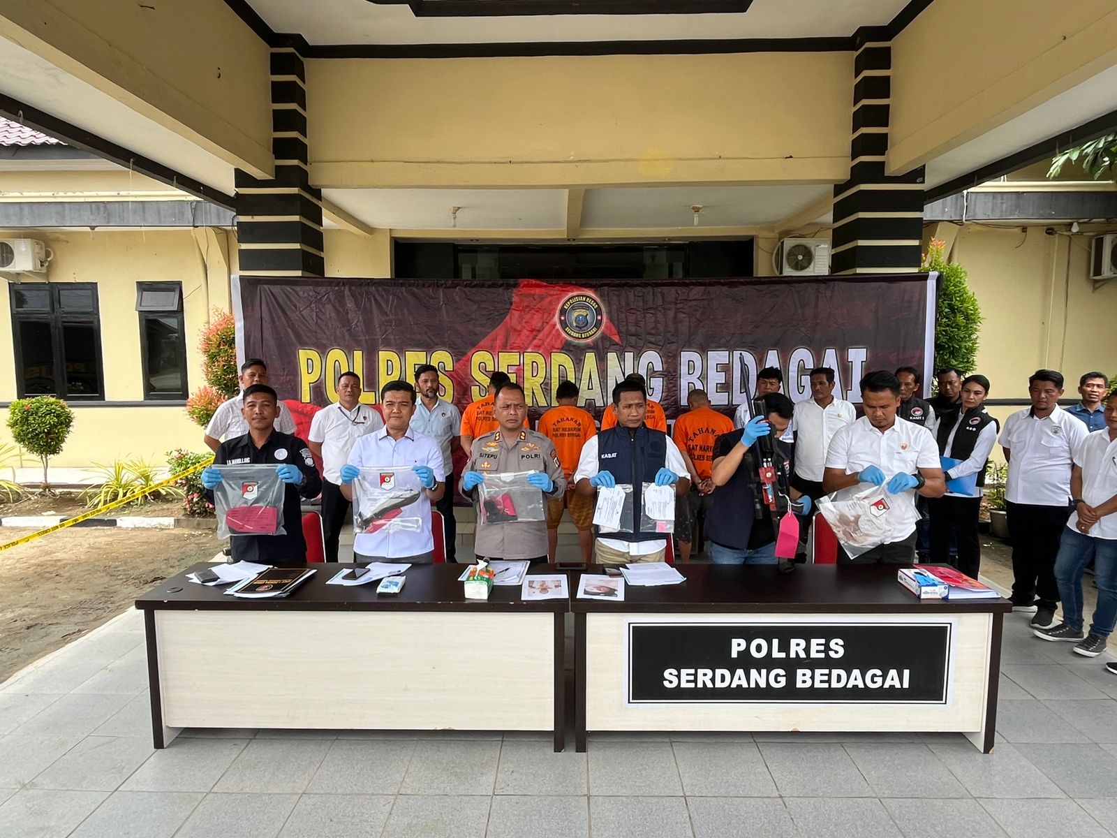 Dari hasil pengungkapan kasus, telah diamanakan 4 (Empat) tersangka setelah petugas melakukan penyelidikan dan penyidikan sehingga mencium keberadaan para pelaku yang bersembunyi di daerah Kota Medan, Sebut Kapolres Sergai AKBP Jhon Sitepu, S.Ik, M.H, saat memimpin konferensi pers bersama, Kasat Reskrim Iptu Binrod Situngkir, Kasat Narkoba AKP Arif Suhadi, Kasi Humas Iptu LB Manullang, KBO Sat Reskrim Iptu Zulfan Ahmadi, di depan Lobi Mako Polres Sergai Jalan Negara, Sei Rampah, Sergai, Sumatera Utara, Kamis (25/9) Pukul.11.00 Wib.