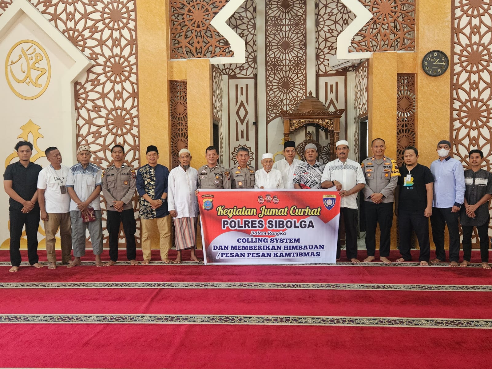 SIBOLGA — Polres Sibolga kembali melaksanakan kegiatan rutin Jumat Curhat dengan mengunjungi Masjid Al-Azhar yang berlokasi di Jalan Sutoyo Siswomiharjo, Kelurahan Pasar Baru, Kecamatan Sibolga Kota. Kegiatan yang dimulai pukul 13.00 WIB ini bertujuan menyampaikan pesan-pesan Kamtibmas demi mendukung terciptanya situasi keamanan dan ketertiban masyarakat (Kamtibmas) yang aman dan kondusif di wilayah Kota Sibolga.