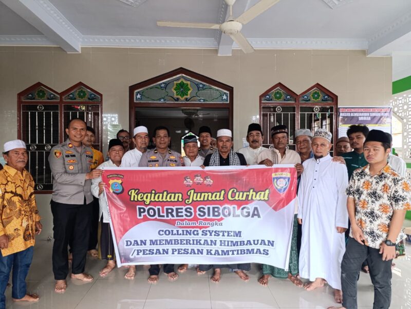 SIBOLGA – Dalam upaya membangun komunikasi yang efektif dengan masyarakat serta menjaga stabilitas keamanan dan ketertiban wilayah hukum Kota Sibolga, Polres Sibolga kembali menggelar kegiatan *Jumat Curhat* pada hari Jumat, 17 Oktober 2025, bertempat di Masjid Al-Mujahidin, Jalan Kamboja, Kelurahan Simare-mare, Kecamatan Sibolga Utara, Kota Sibolga.