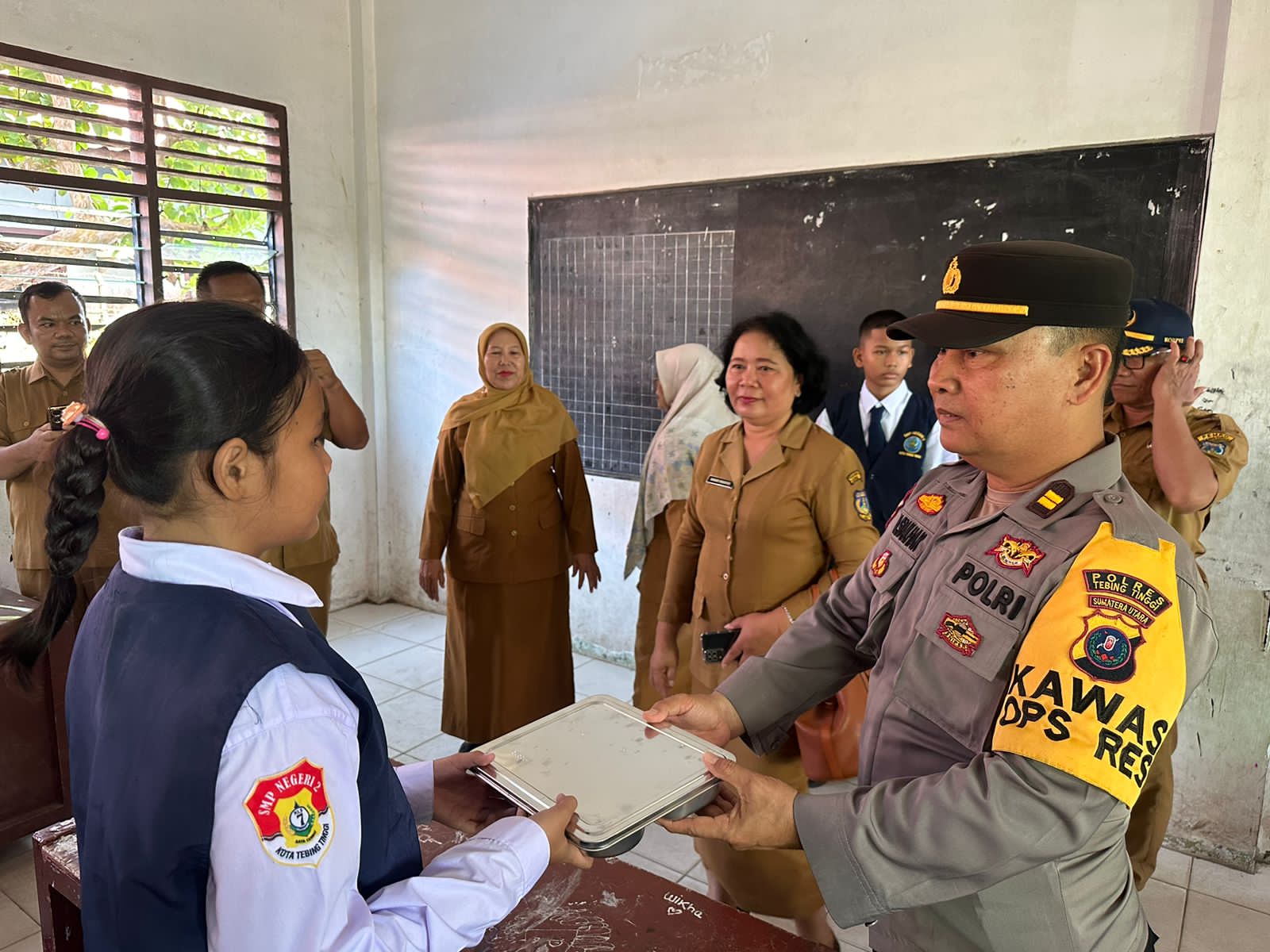 TEBING TINGGI – Guna mendukung peningkatan gizi serta kesehatan generasi muda, Kasiwas Polres Tebing Tinggi Iptu Masdulhak, yang mewakili Kapolres Tebing Tinggi menghadiri acara launching dan pendistribusian program Makanan Bergizi Gratis (MBG) kepada pelajar penerima manfaat. Kegiatan tersebut dilaksanakan di SMP Negeri 2 Kota Tebing Tinggi, Senin (14/7/2025).