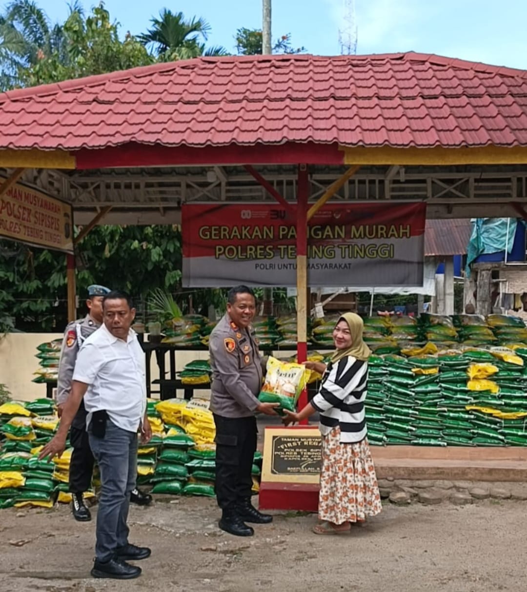 TEBING TINGGI – Polres Tebing Tinggi melalui Polsek Sipispis menggelar kegiatan Gerakan Pangan Murah (GPM) untuk masyarakat pada Senin (18/8/2025), bertempat di Mapolsek Sipispis. Kegiatan ini disambut baik oleh warga, terbukti sebanyak 2 ton beras habis terjual hanya dalam waktu beberapa jam saja.
