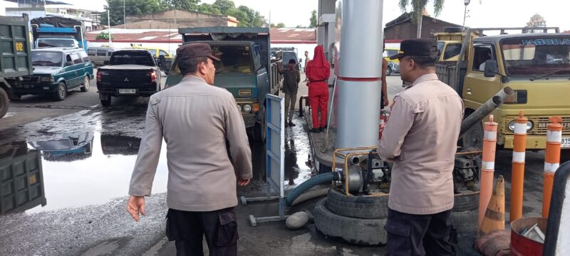 Dalam hal ini petugas juga melakukan pengamanan dan pengaturan arus lalulintas. Kehadiran petugas bertujuan menjaga situasi tetap aman, mencegah keributan, serta memastikan proses pengisian BBM berjalan lancar.