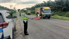 Sat Lantas Polres Batu Bara Patroli Kibas Bendera di Tiga Titik Jalinsum