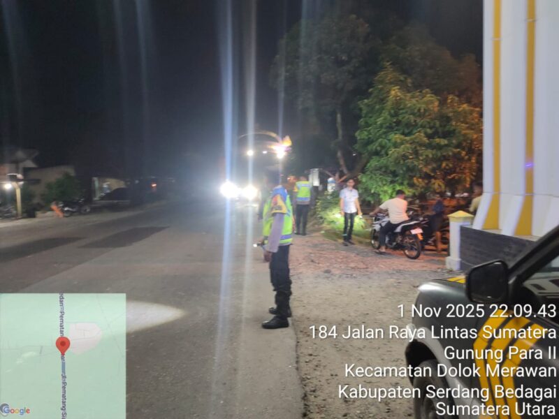 TEBING TINGGI – Dalam upaya menjaga situasi Kamtibmas diwilayah hukumnya, Polsek Dolok Merawan Polres Tebing Tinggi melaksanakan patroli malam guna menindak potensi aktivitas geng motor, balap liar, dan tawuran yang meresahkan warga. Kegiatan yang dilaksanakan pada Sabtu malam (1/11/2025) ini berlangsung aman dan kondusif.