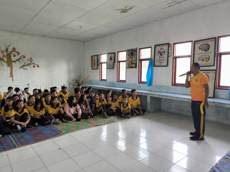 BATU BARA – Kanit Binmas Polsek Labuhan Ruku Resos Batu Bara, Ipda Alpian, S.H, melaksanakan sosialisasi perundungan, dan kekerasan di SMP Negeri 1 Talawi Kecamatan Talawi, Batu Bara, Sumatera Utara, Sabtu (15/11).