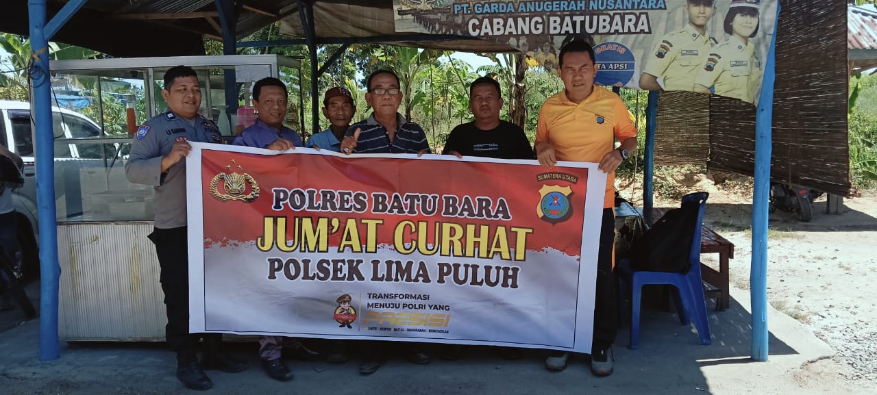BATU BARA – Personil Polsek Lima Puluh Polres Batu Bara melaksanakan kegiatan Jumat Curhat, dan Cooling System dalam rangka menciptakan situasi kamtibmas yang aman dan kondusif di Desa Perkebunan Dolok, Kecamatan Lima Puluh, Batu Bara, Sumatera Utara, Jumat (18/7) Pukul.11.00 Wib.