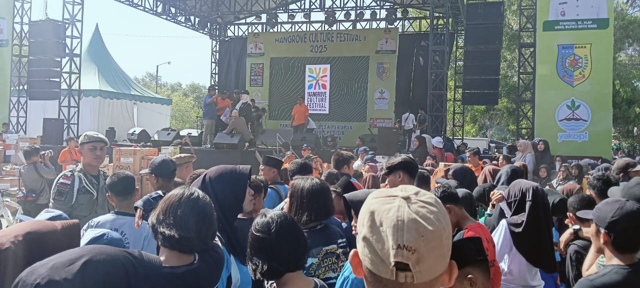 BATU BARA – Personil Polsek Lima Puluh, Polres Batu Bara melaksanakan pengamanan giat Jalan Santai Mangrove Culture Festival di Pantai Sejarah Desa Peupuk, Kecamatan Lima Puluh Pesisir, Batu Bara, Sumatera Utara, Sabtu (19/7) Pukul.07.00 Wib.
