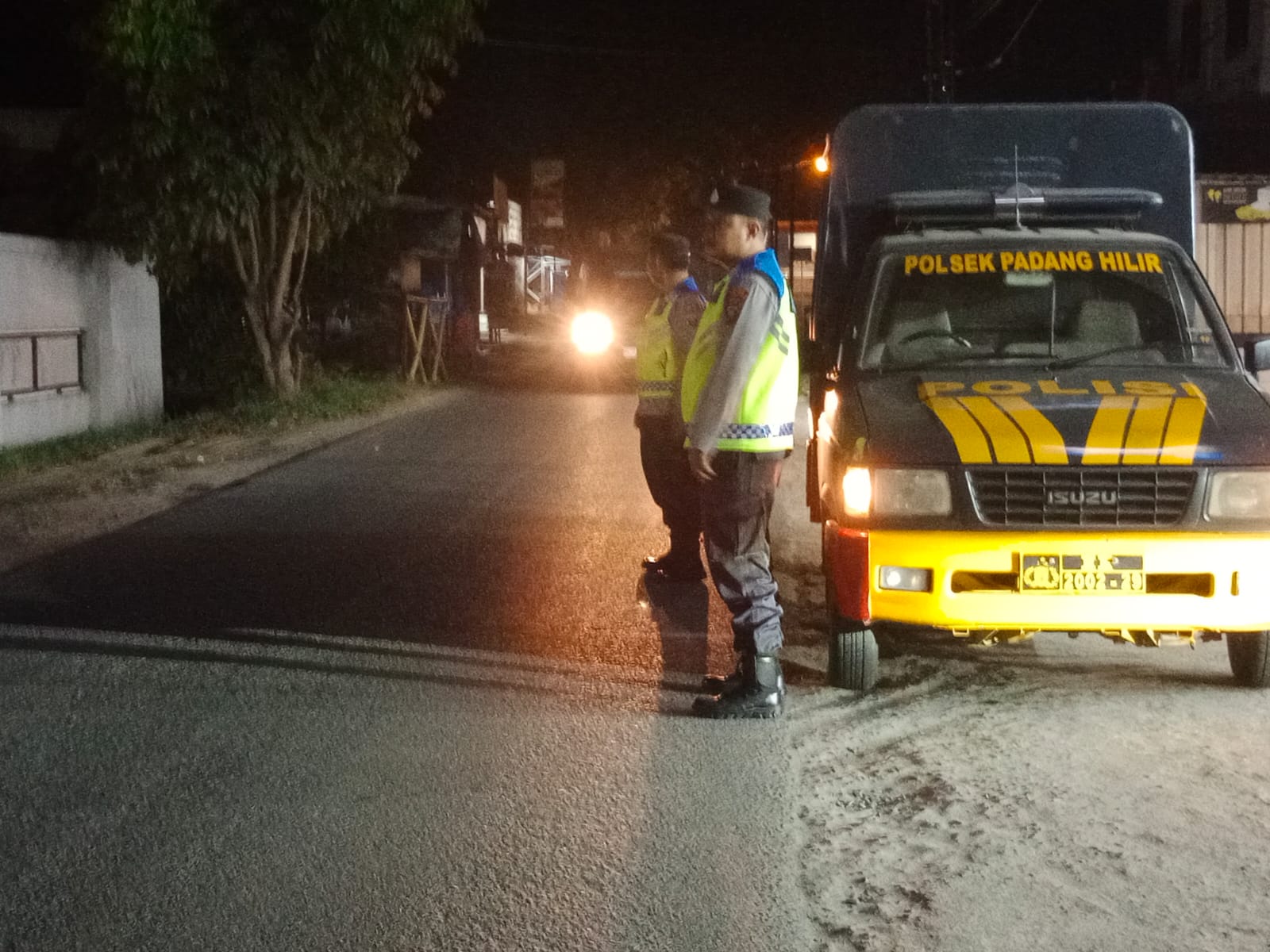Dengan menggunakan satu unit mobil patroli, dua personel Polsek Padang Hilir yakni Aiptu SM Nainggolan dan Aipda Zeffri Sirait mengitari beberapa ruas jalan inti kota.